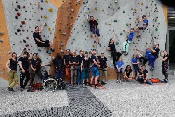 Klettern ist für uns der ideale Sport für inklusive Gruppen. Viele unserer Teilnehmer*innen könnten nicht Fußball spielen oder Fahrrad fahren, aber sie schaffen es eine 15 Meter hohe Kletterwand hinaufzuklettern. Alleine das ist wahnsinnig toll. Zudem genießen wir das gemeinsame Erlebnis: wir sind in den Klettergruppen gemeinsam an der Wand, aber jede*r kann in seinem/ihrem selbst gewählten Schwierigkeitsgrad und Tempo klettern.