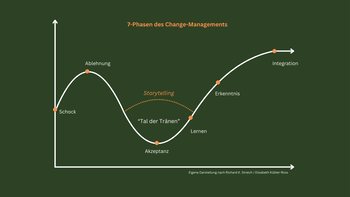 Bei Veränderungsprozessen in Organisationen sowie im persönlichen Kontext durchlaufen wir unterschiedliche Phasen und Emotionen: Schock, Ablehnung, Akzeptanz, Lernen, Erkenntnis und schließlich Integration. Die emotionalen Reaktionen können sich jedoch von Person zu Person unterscheiden. Diese Phasen wurden von Richard K. Streich in dem 7-Phasen Modell veranschaulicht. Es beruht auf den Erkenntnissen der Sterbeforscherin Elisabeth Kübler-Ross, die in ihrem Buch „On Death and Dying“ in den 1960ern die fünf Phasen der Trauer beschrieben hat.